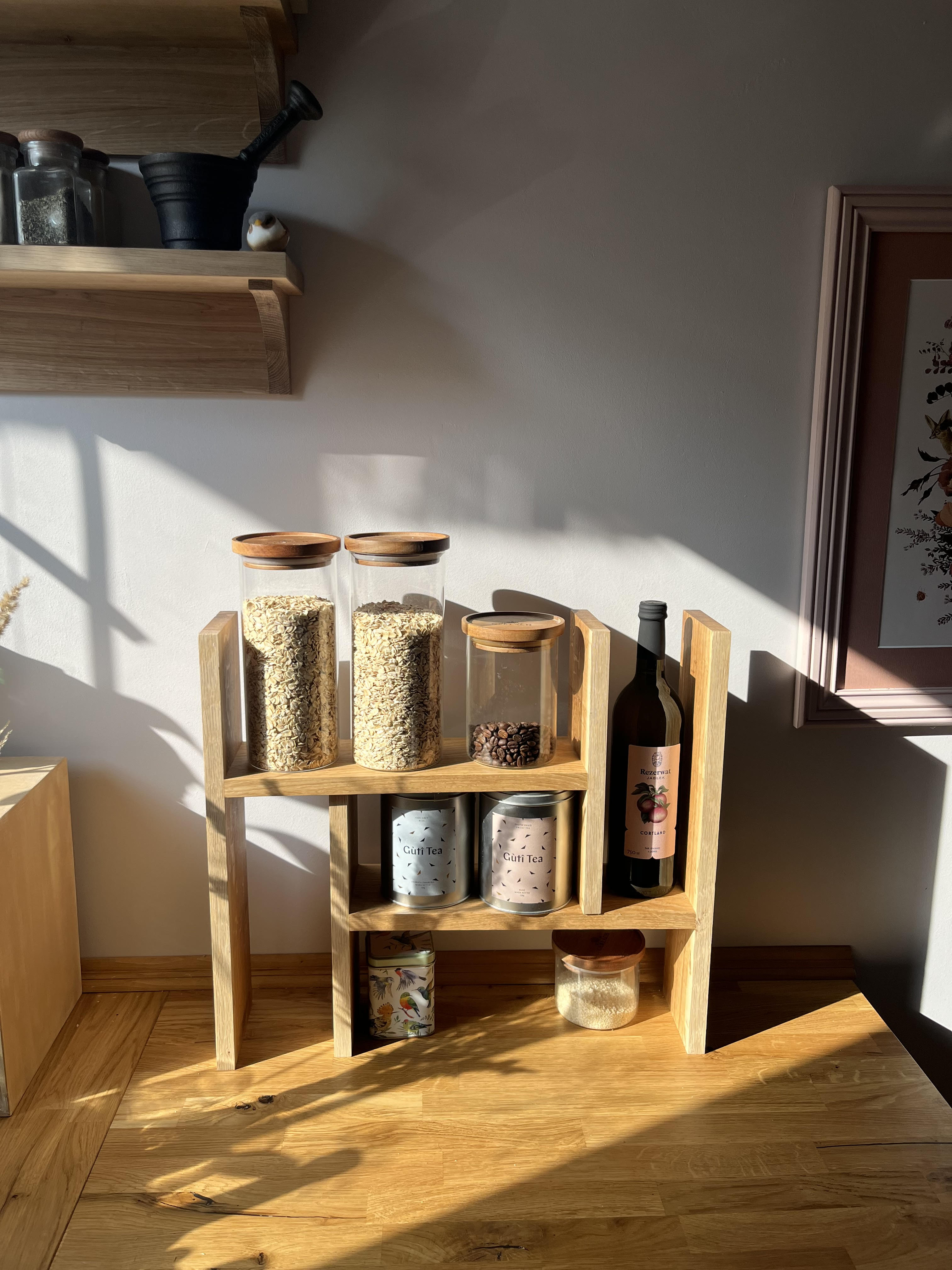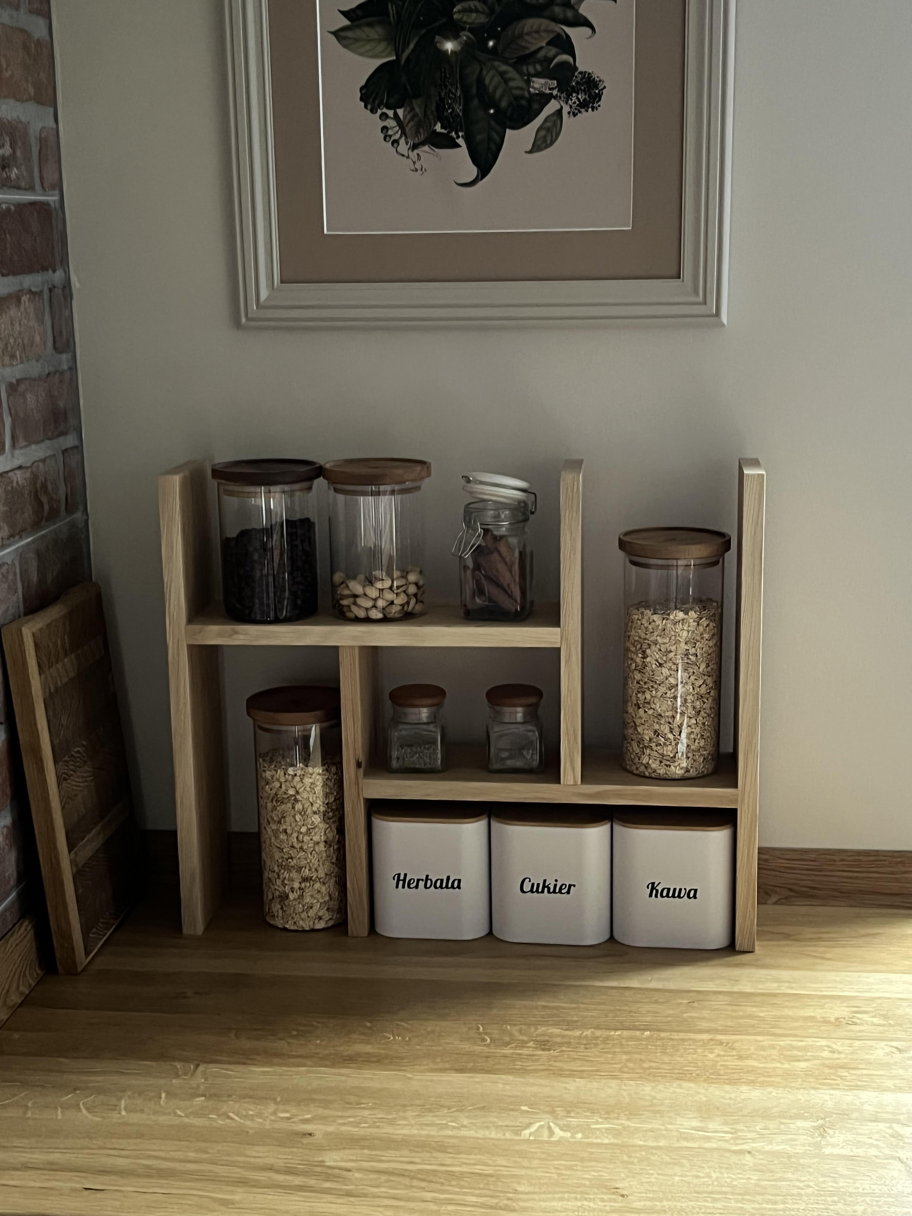 Półka została stworzona z myślą o kuchni ale idealnie sprawdzi się też w innych pomieszczeniach.