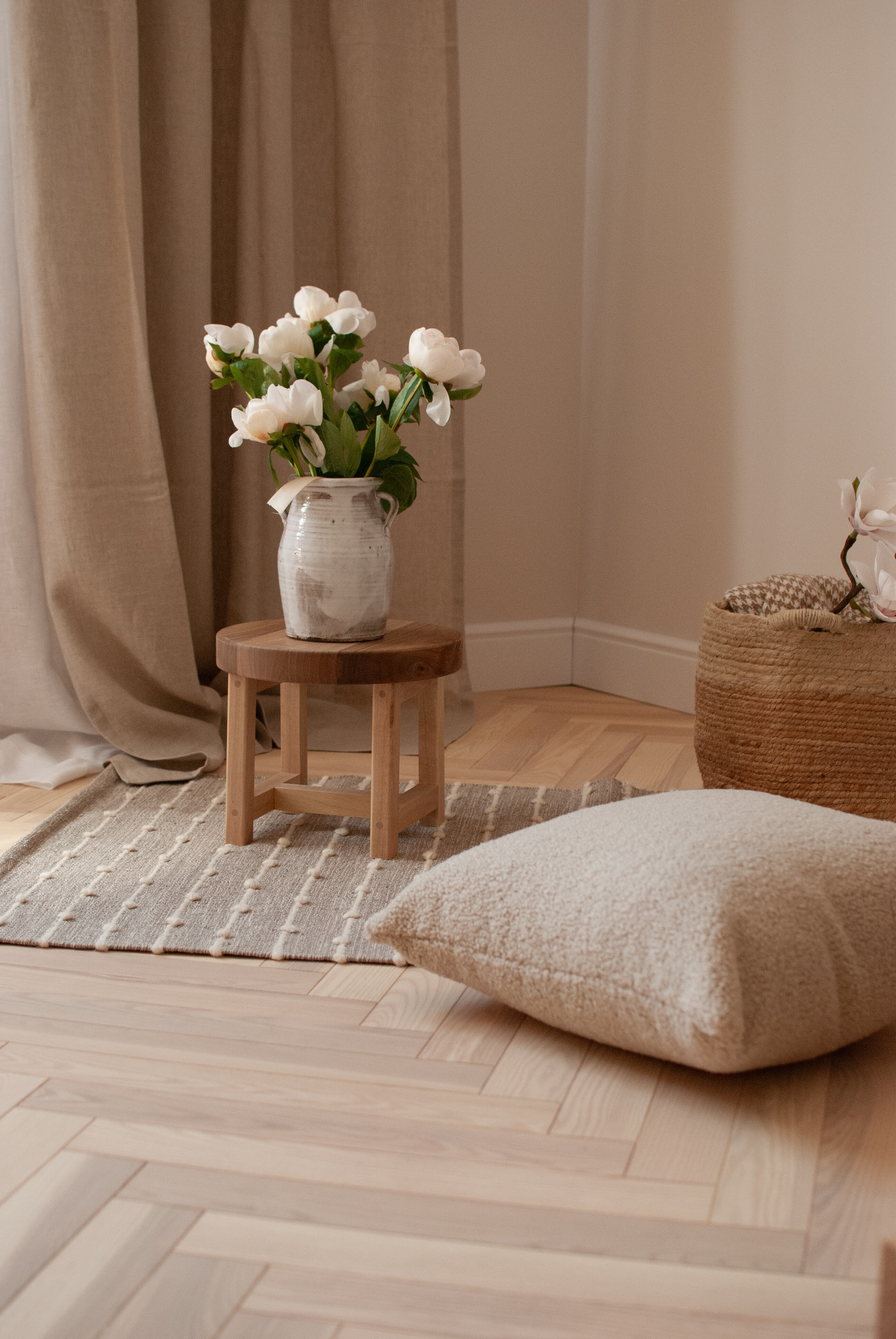 Widoczne piękne usłojenie drewna. Produkt w stylu rustykalnym, co oznacza, iż mogą występować sęki i inne naturalne pęknięcia drewna.