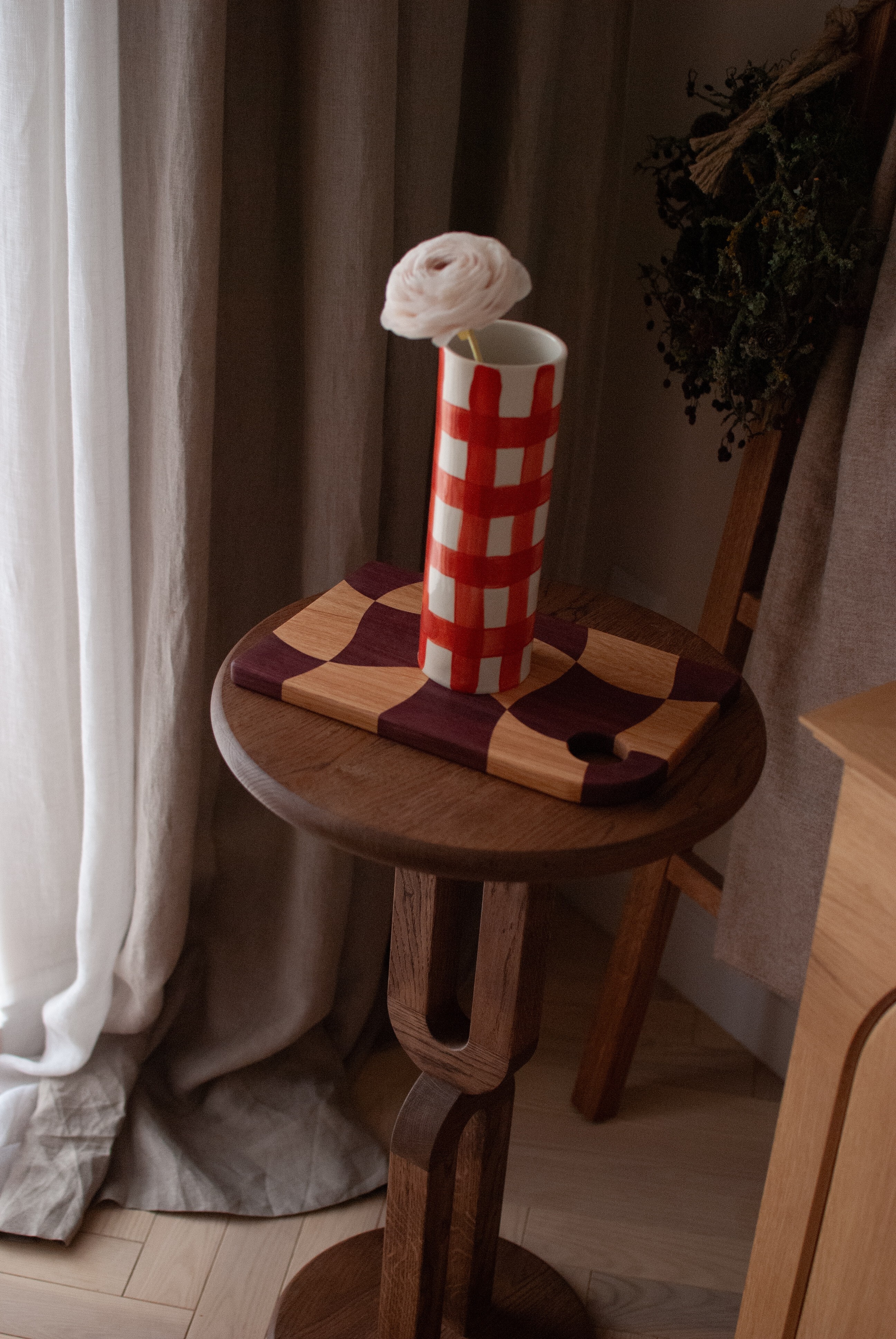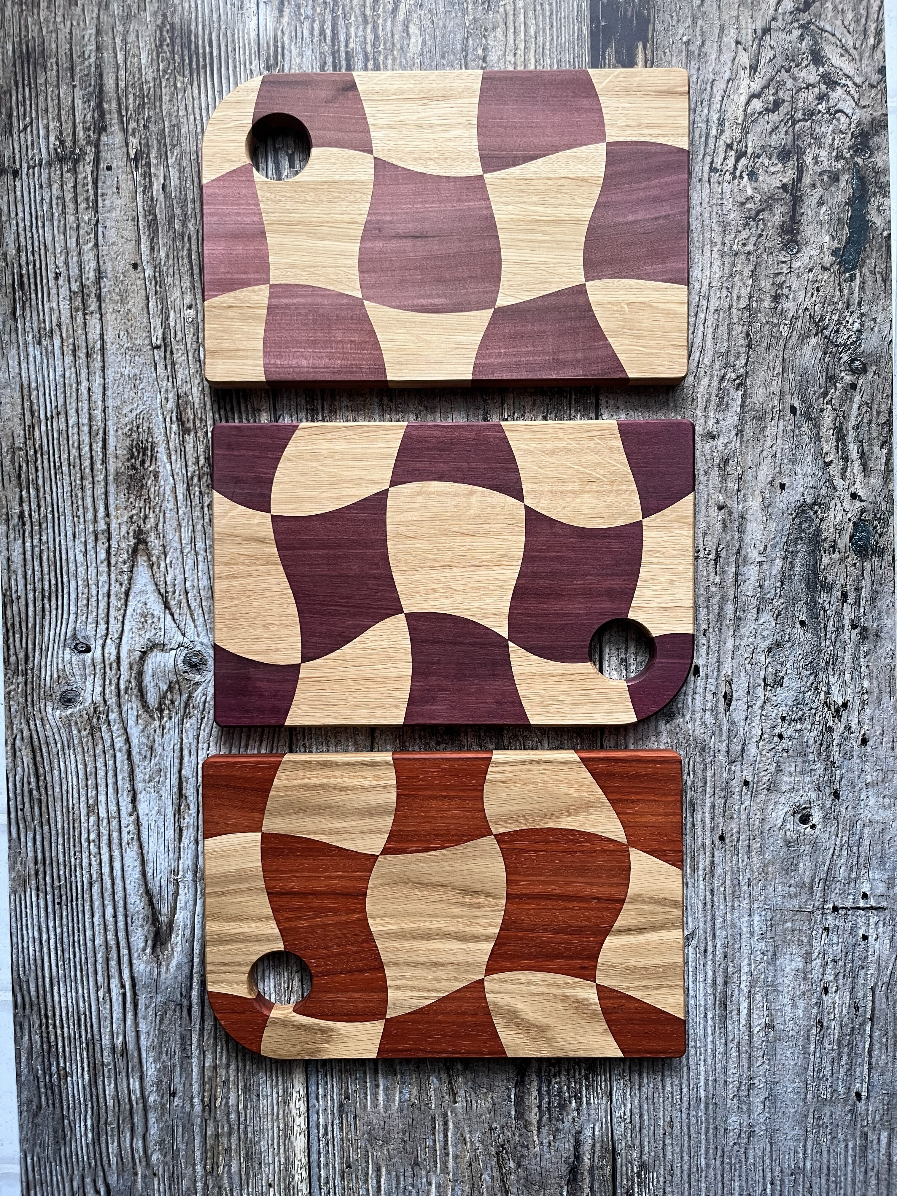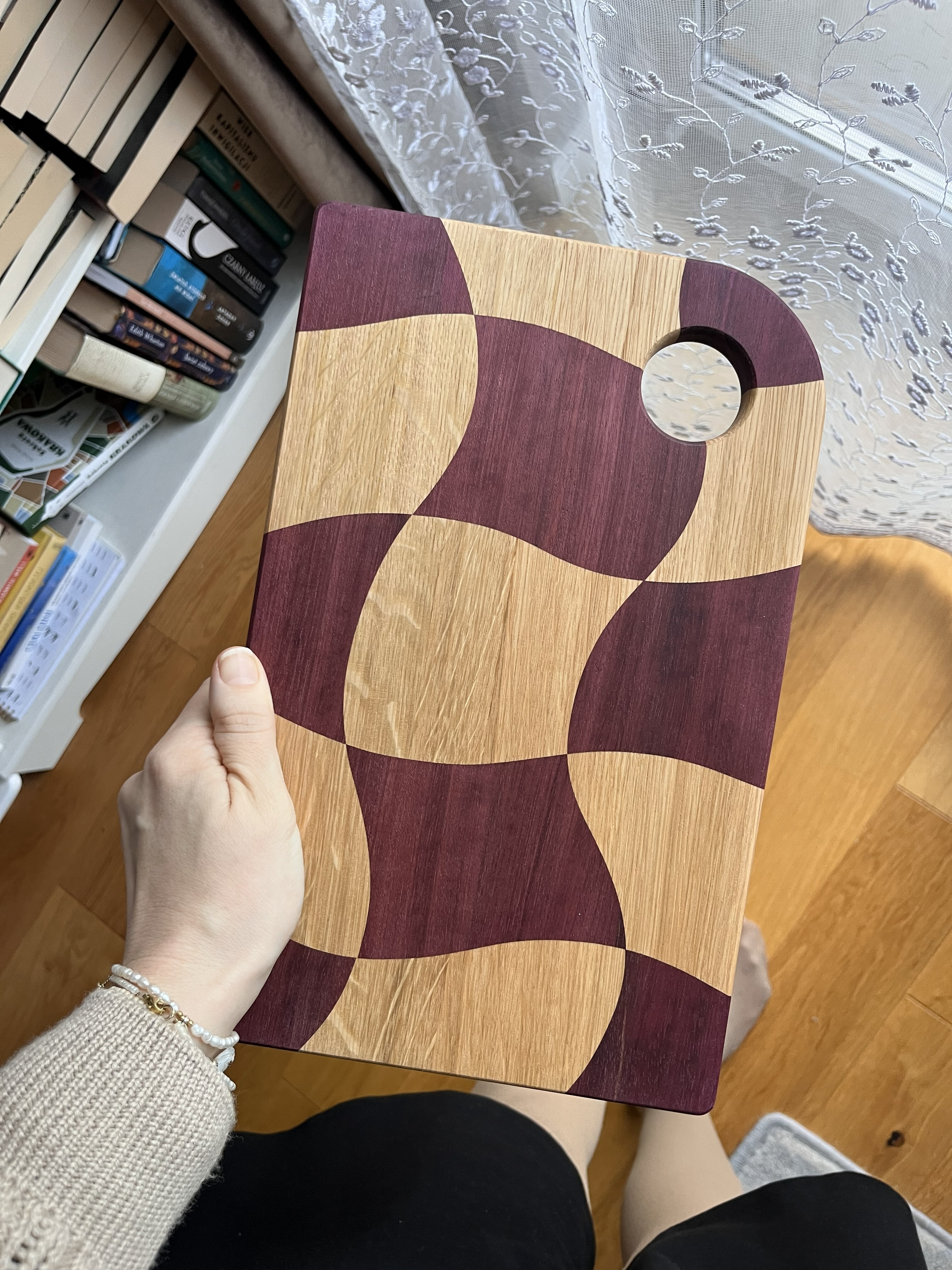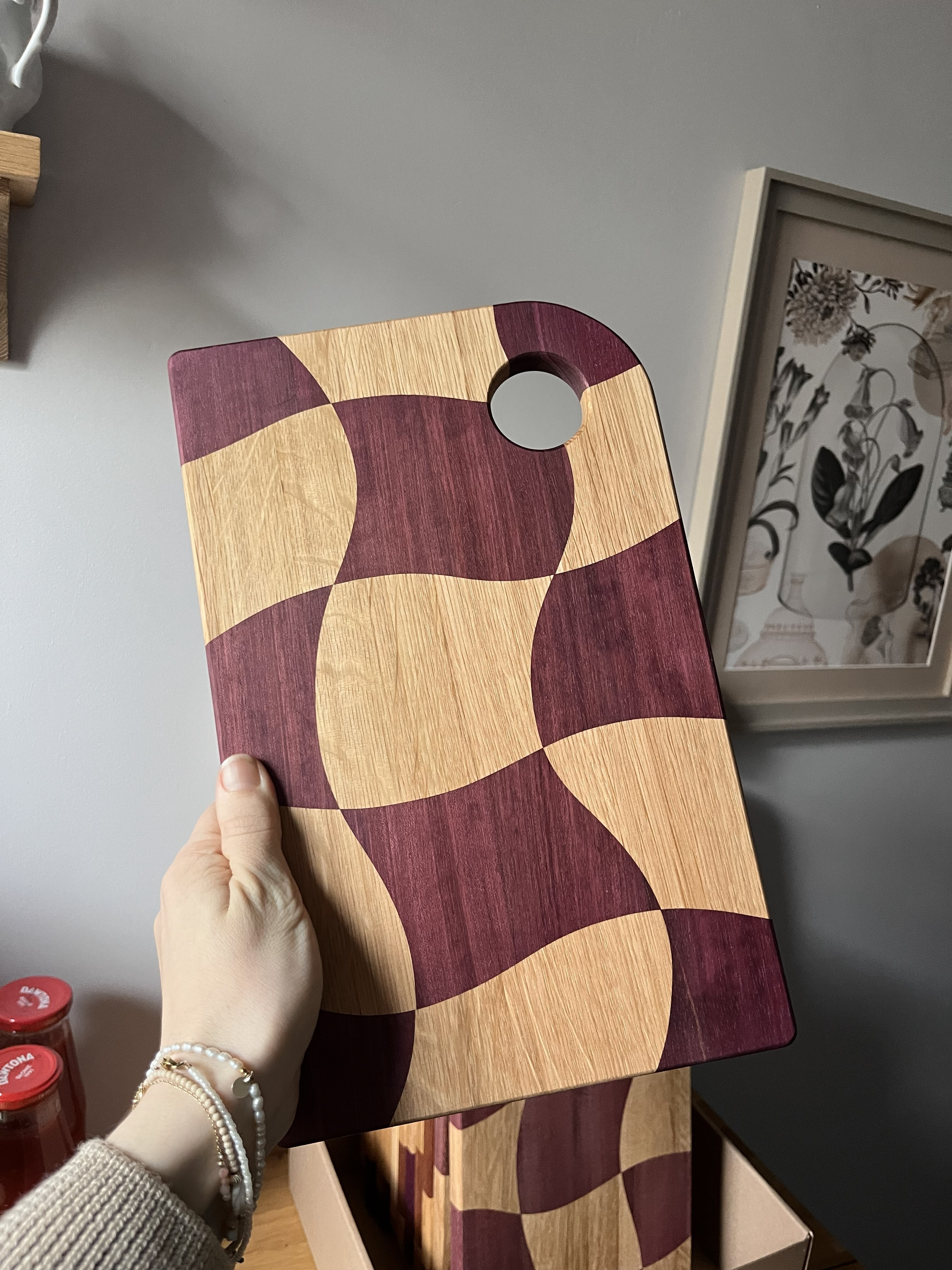 Wyobraź sobie deski do krojenia, które są tak unikalne, jak Twoje umiejętności kulinarne! Nasza deska w fale, stworzona z połączenia drewna dębowego i amaranthu, zachwyca intensywnym fioletowym kolorem – który, uwierz, nie jest wynikiem magicznej mikstury, lecz naturalnym odcieniem drewna. Każda deska to prawdziwy artysta w kuchni, a dzięki falistej formie krojenie stanie się nie tylko obowiązkiem, ale i prawdziwą ucztą dla oczu. Nie ma dwóch takich samych desek, więc możesz być pewny, że Twoja będzie jedyna w swoim rodzaju – tak jak każdy Twój przepis! Czas na krojenie z klasą!