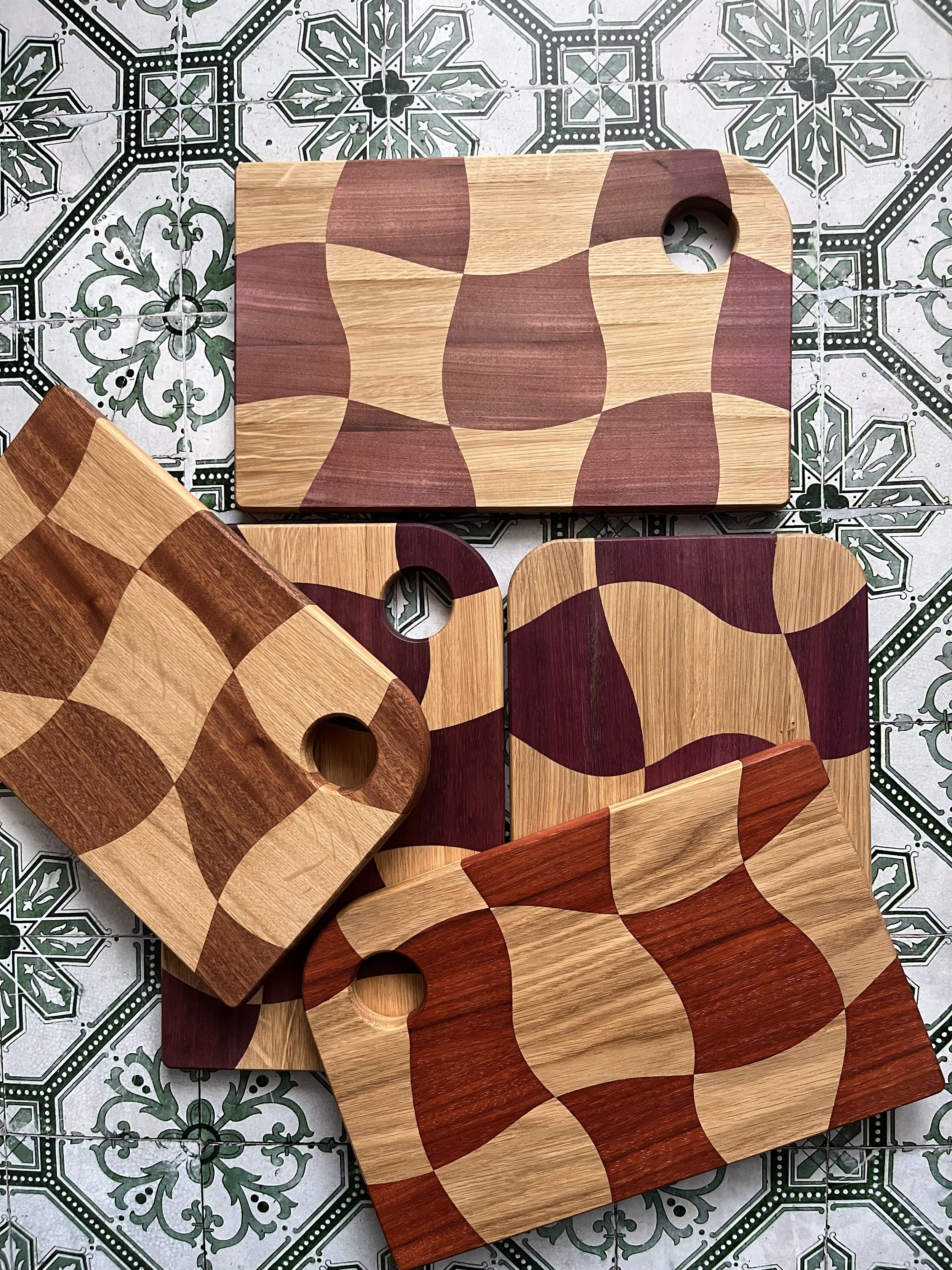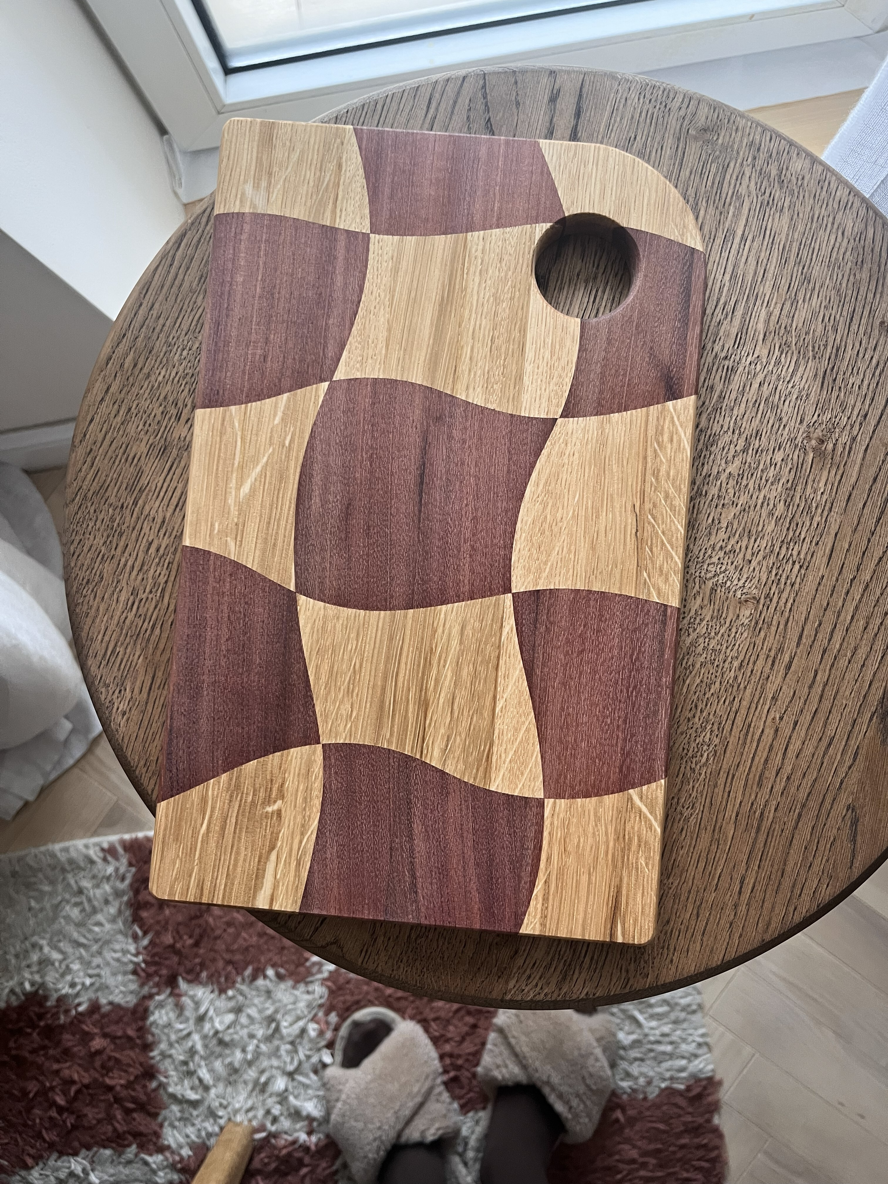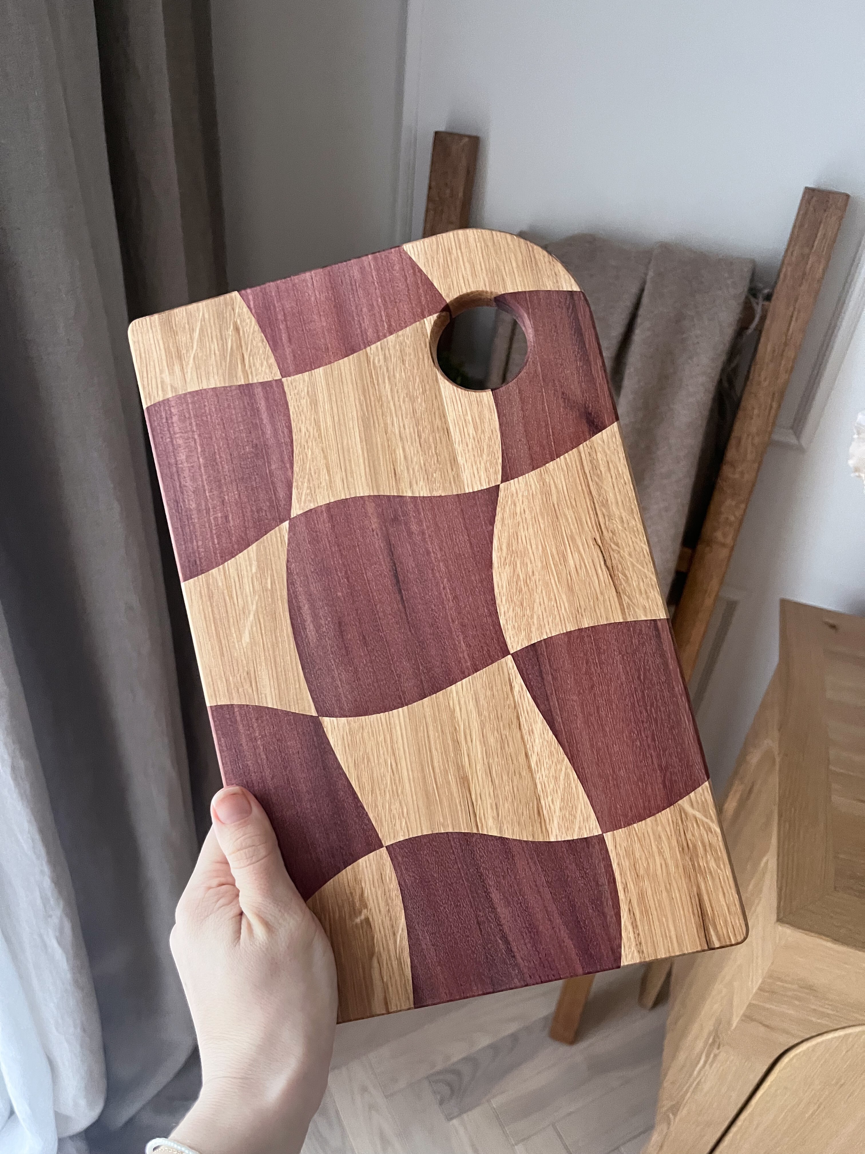 Prezentujemy deski do krojenia, które nie tylko spełniają swoje zadanie, ale również są dziełami sztuki! Każda z nich jest jedyna w swoim rodzaju, bo po co mieć dwie takie same, skoro można mieć jedną z amaranthu, z lekko fioletowym, przydymionym kolorem? Połączenie z dębem sprawia, że nasze deski są twarde jak Twój upór, a fale dodają im charakteru – podobnie jak Twoje kulinarne eksperymenty! Gotuj z klasą, krojąc na desce, która z pewnością przyciągnie wzrok każdego gościa!