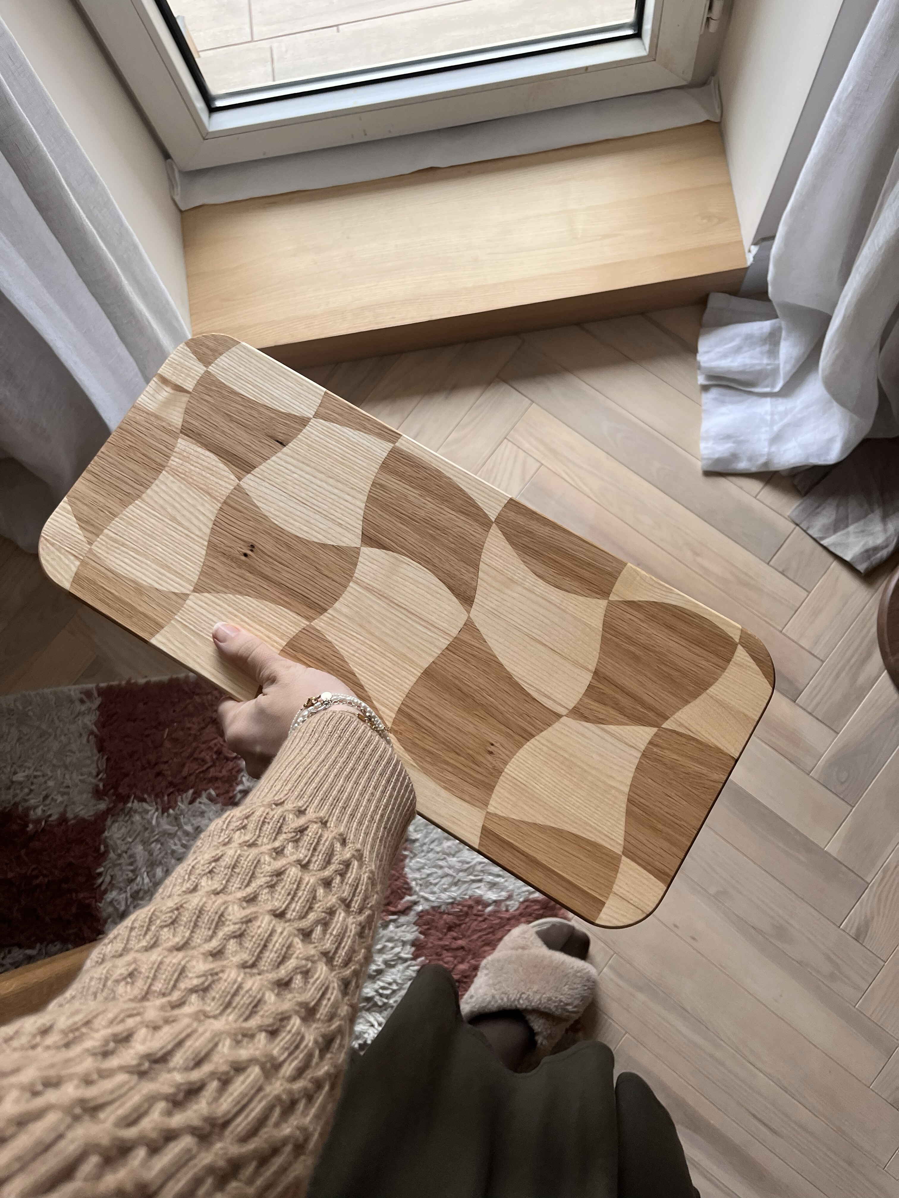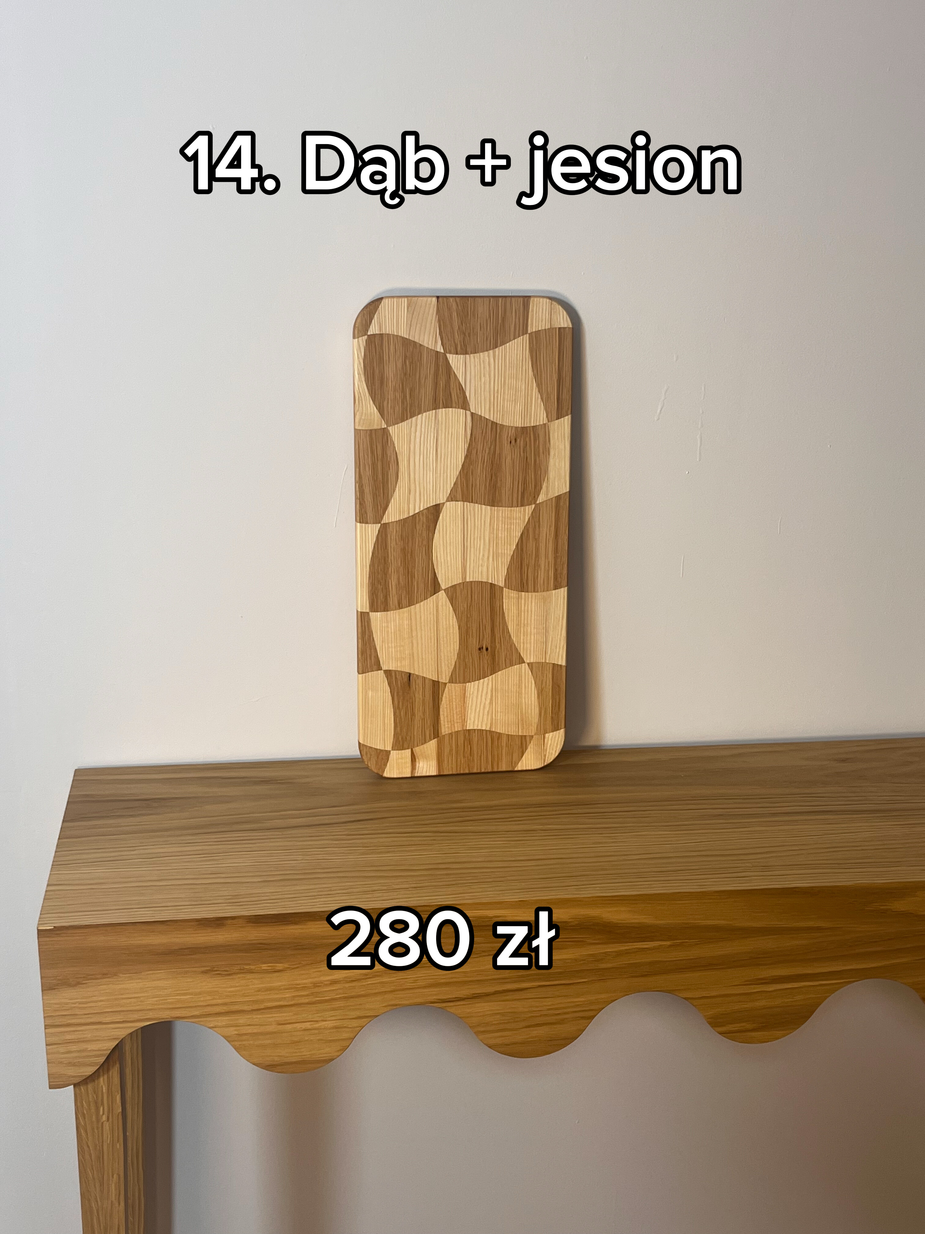 Nie ma nic bardziej oryginalnego niż nasza deska do krojenia w fale! Każda z nich to unikalne dzieło sztuki, które powstało z połączenia dębu i jesionu. Ręcznie wycinane fale dodają charakteru i sprawiają, że nawet krojenie warzyw staje się przygodą! Dlaczego mieć nudną deskę, skoro możesz mieć falującą? Uwaga, gotując z nami, możesz poczuć się jak szef kuchni w najlepszej restauracji – nawet jeśli twoje dania to tylko kanapki!