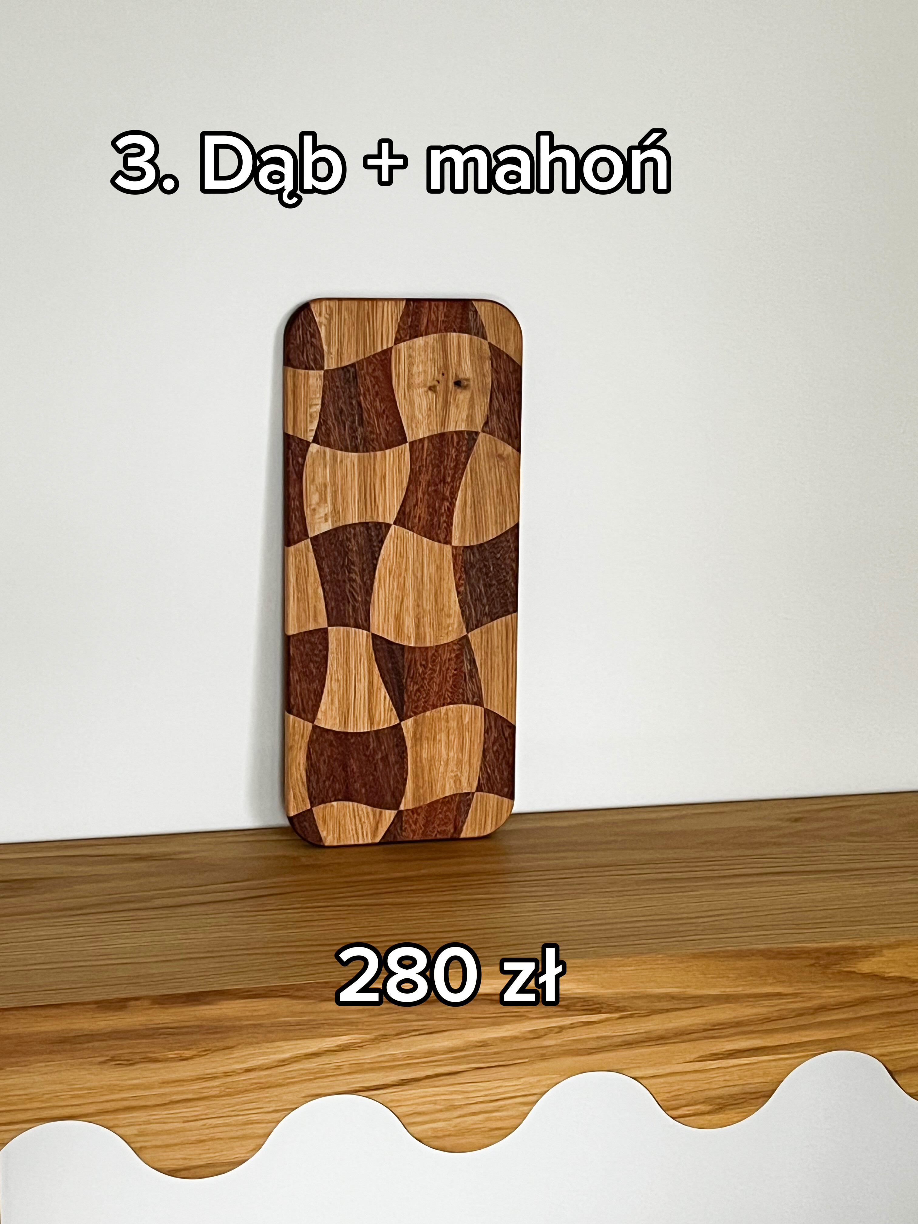 Nasza deska do krojenia w fale to prawdziwy hit! Każda z nich jest tak unikalna, jak Twoje umiejętności kulinarne – czyli niepowtarzalna! Wykonana z połączenia drewna dębowego i mahoniu sapeli, ta deska nie tylko sprawi, że Twoje składniki będą wyglądać jak z najlepszej restauracji, ale też doda odrobinę stylu do każdej kuchni. Ręcznie wycinane fale sprawią, że nawet krojenie cebuli stanie się przyjemnością, a nie łzawym wyzwaniem! Nie czekaj – przynieś do swojej kuchni odrobinę fali i spraw, by gotowanie stało się sztuką!