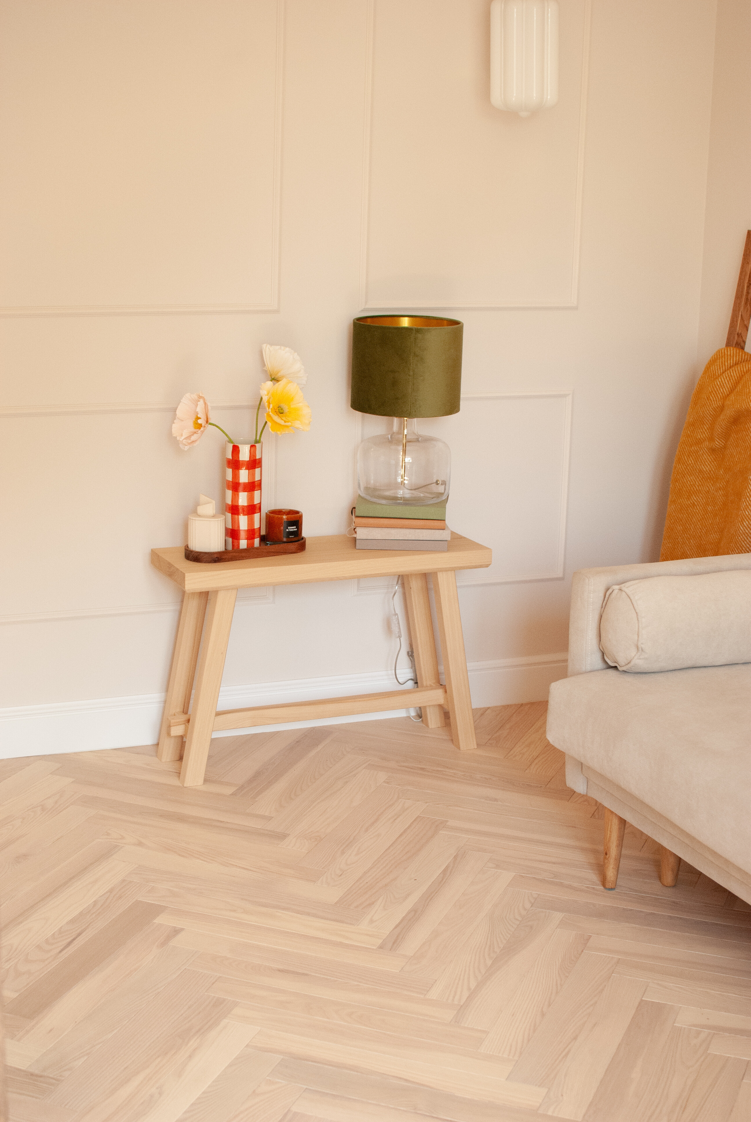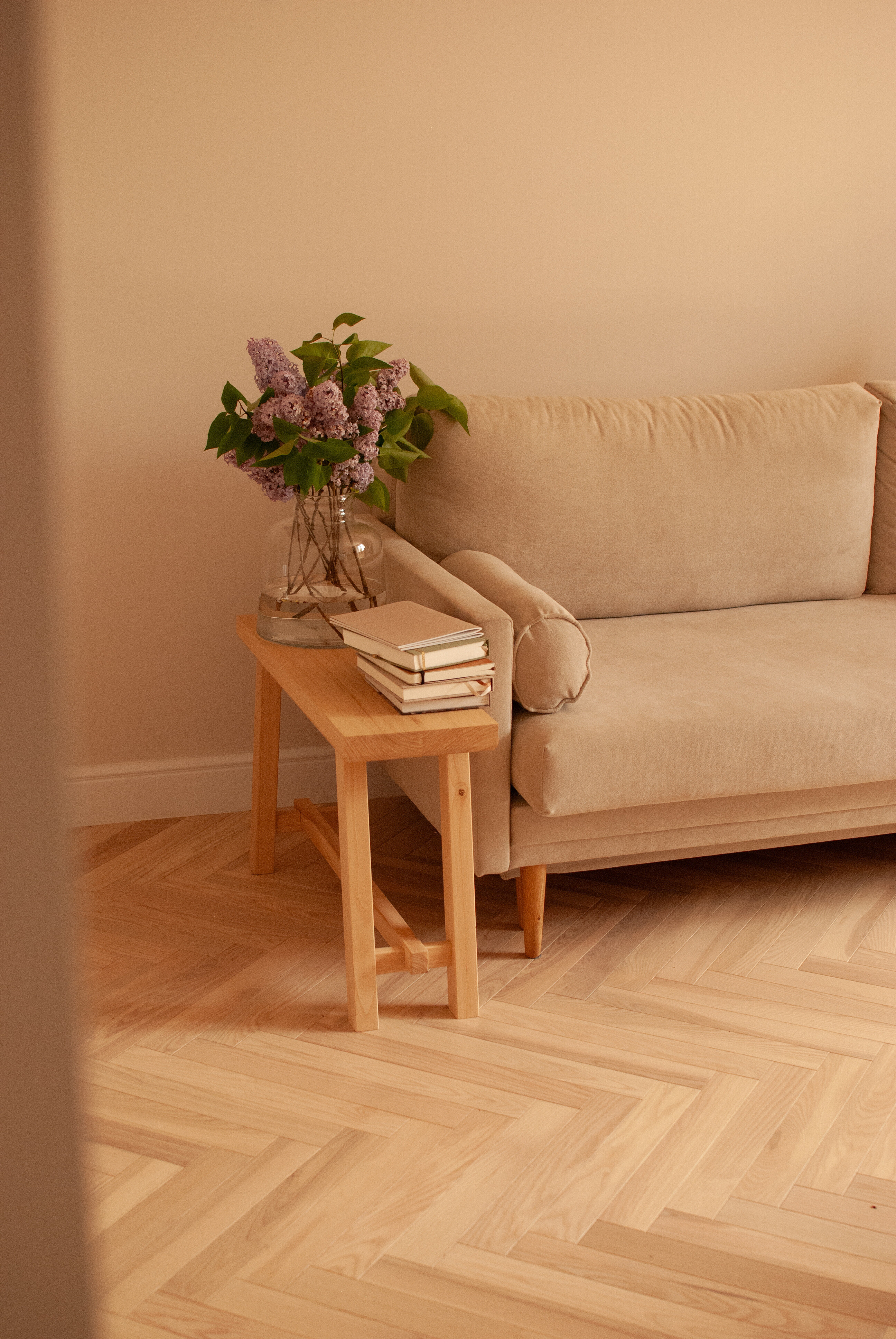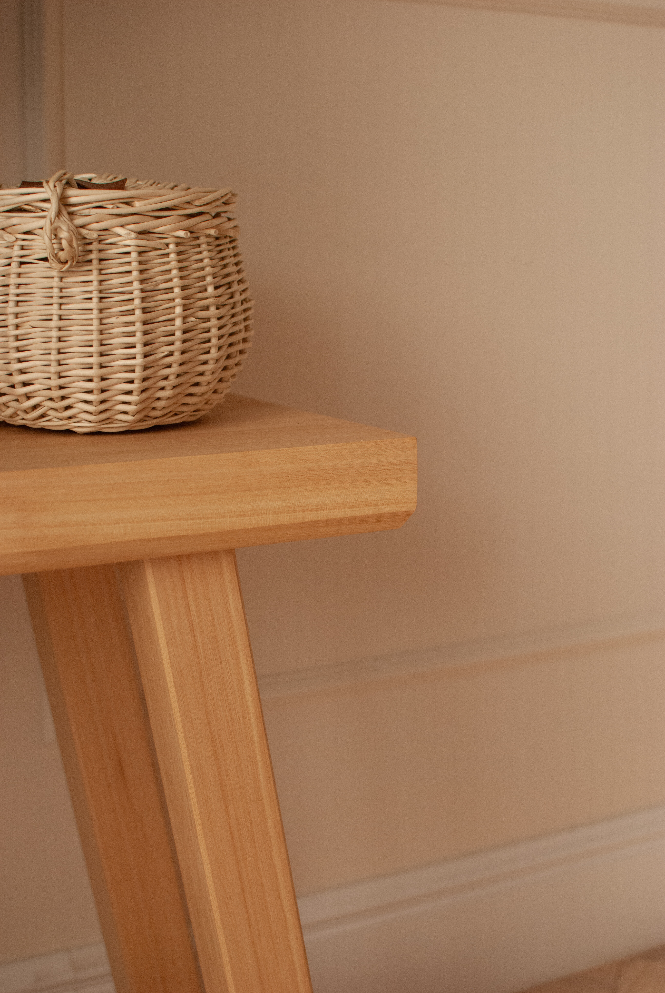 Po wielu tygodniach pracy, precyzyjnie dobierając kawałki drewna, powstała ławeczka, której linie były proste i eleganckie, ale także pełne subtelnej organicznej formy. Zastosowaliśmy naturalne wykończenie, zachowując naturalny odcień drewna.