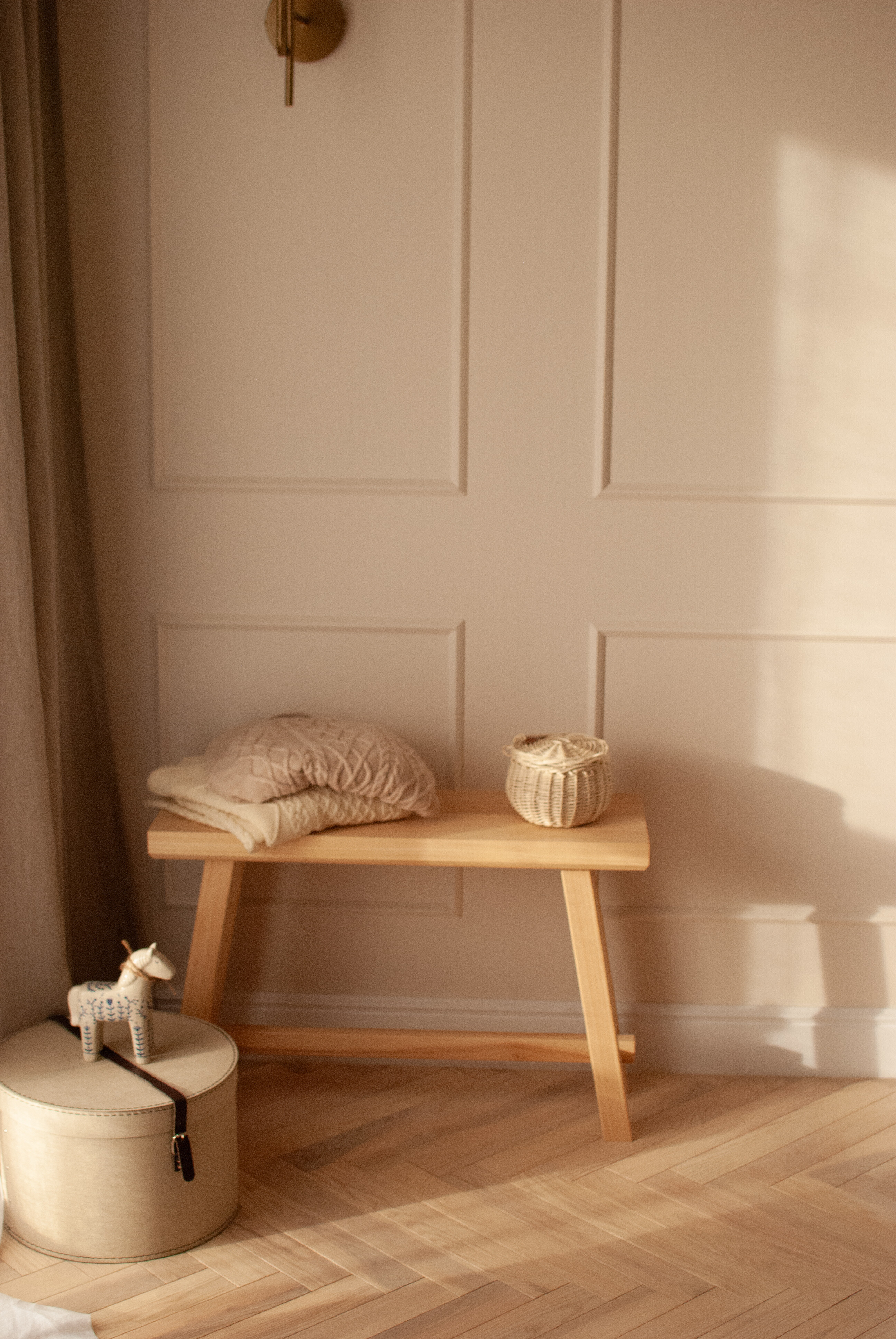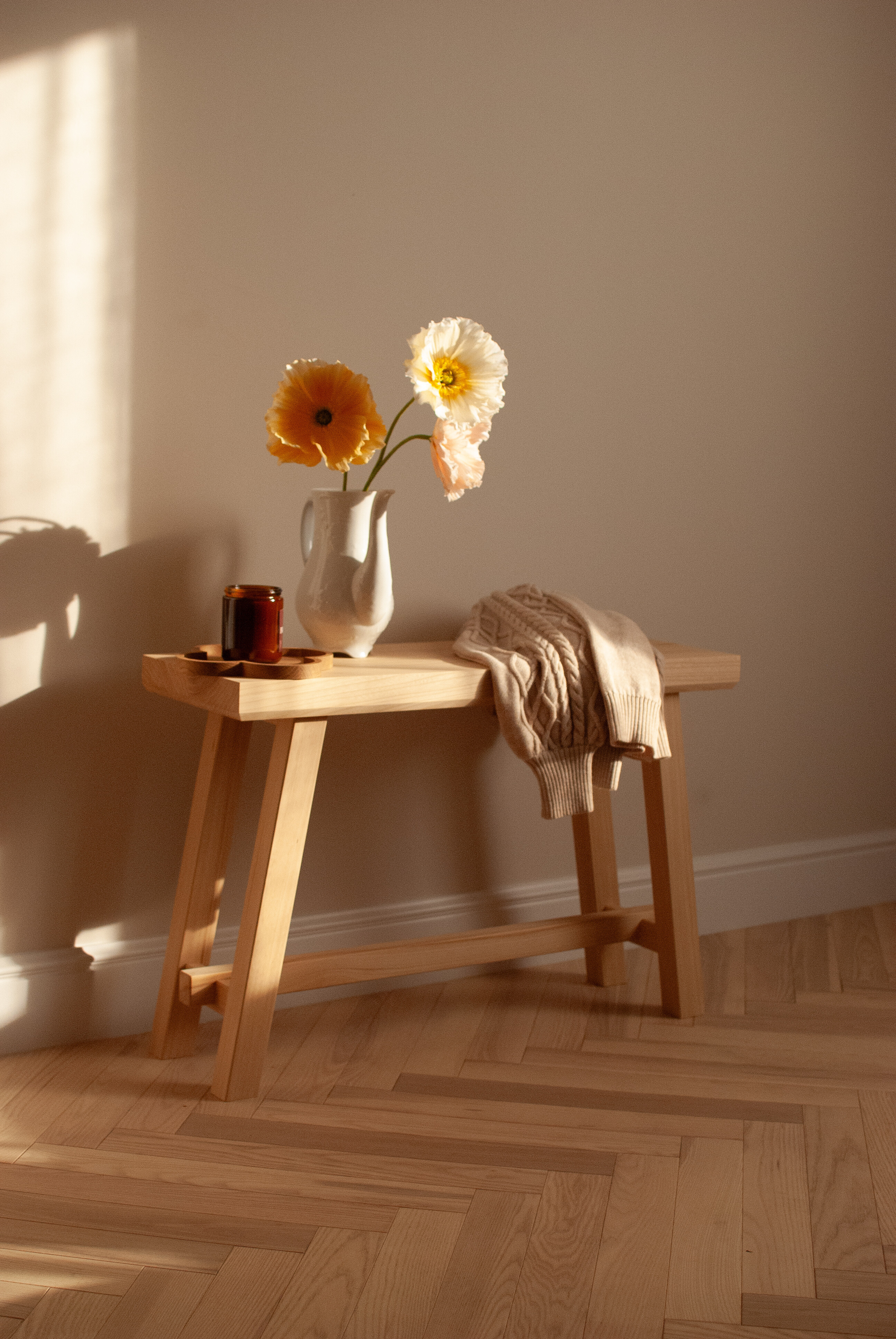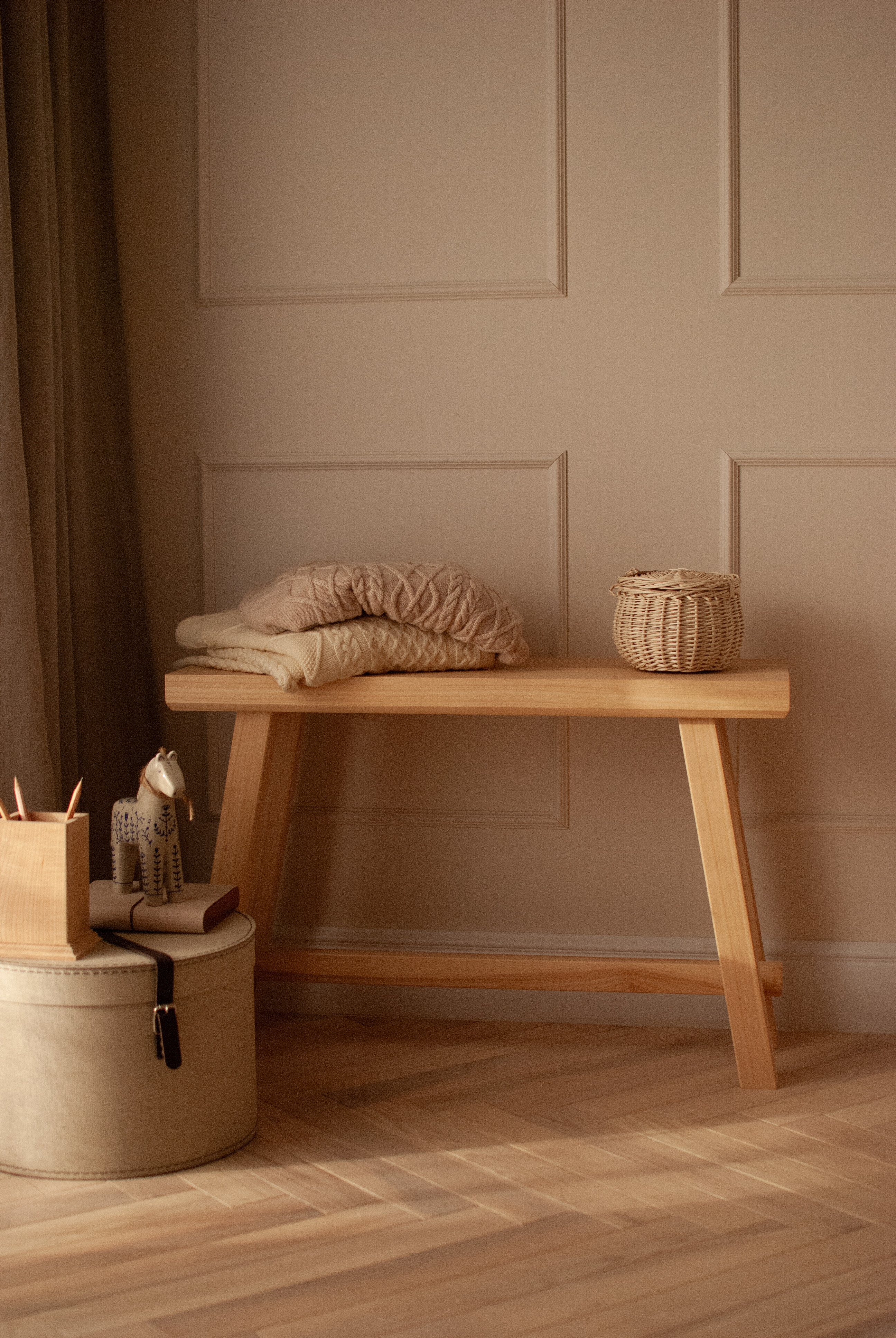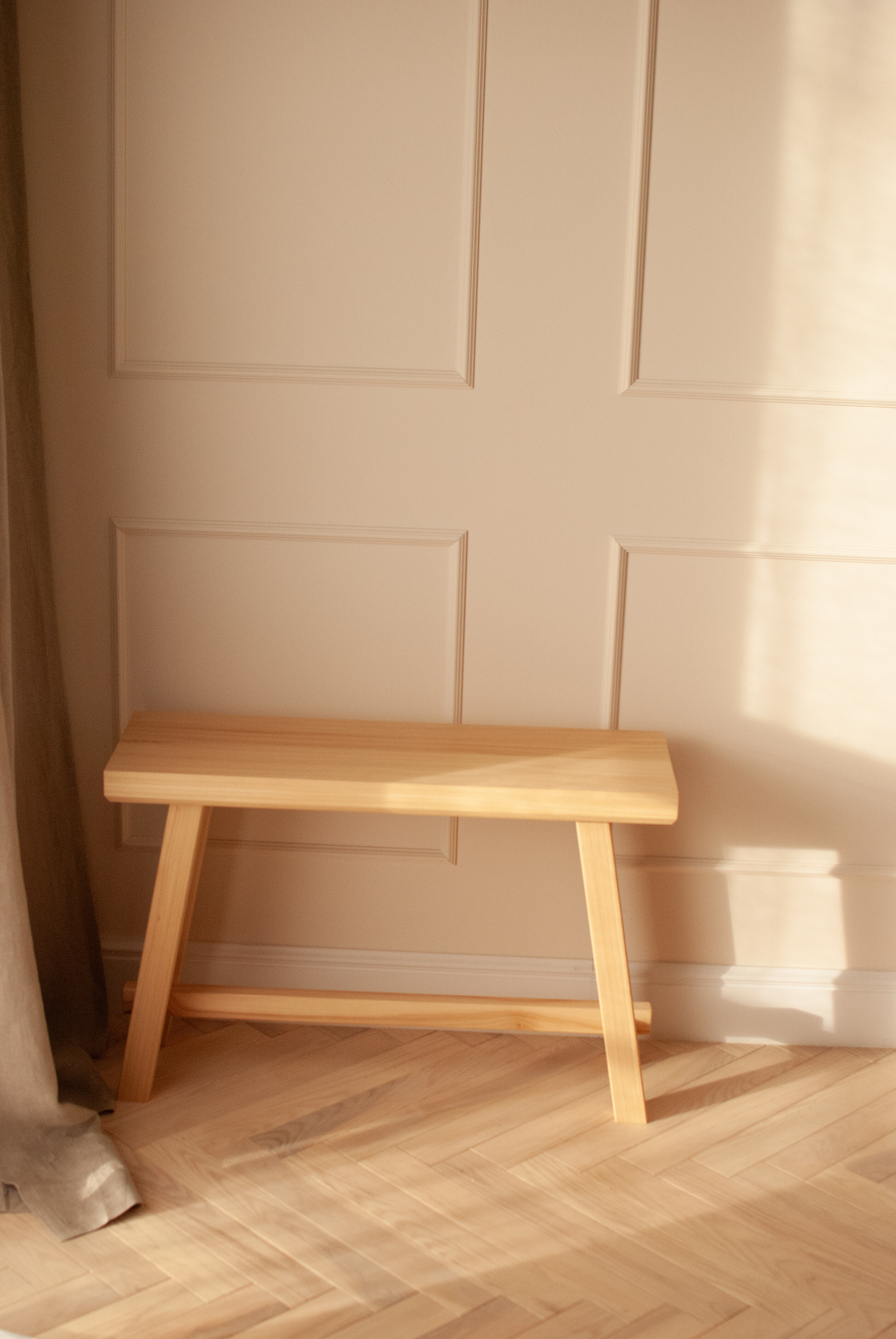 Nogi mebla są stabilne dzięki dolnym poprzeczkom, a całość sprawia wrażenie harmonijnej jedności z przestrzenią. ławeczka powstała z myślą o ludziach szukających spokoju i wyciszenia, podobnie jak my wśród natury. ławeczka, na której można usiąść, wyciszyć umysł i poczuć się częścią otaczającej natury, z szacunkiem do prostoty i elegancji.