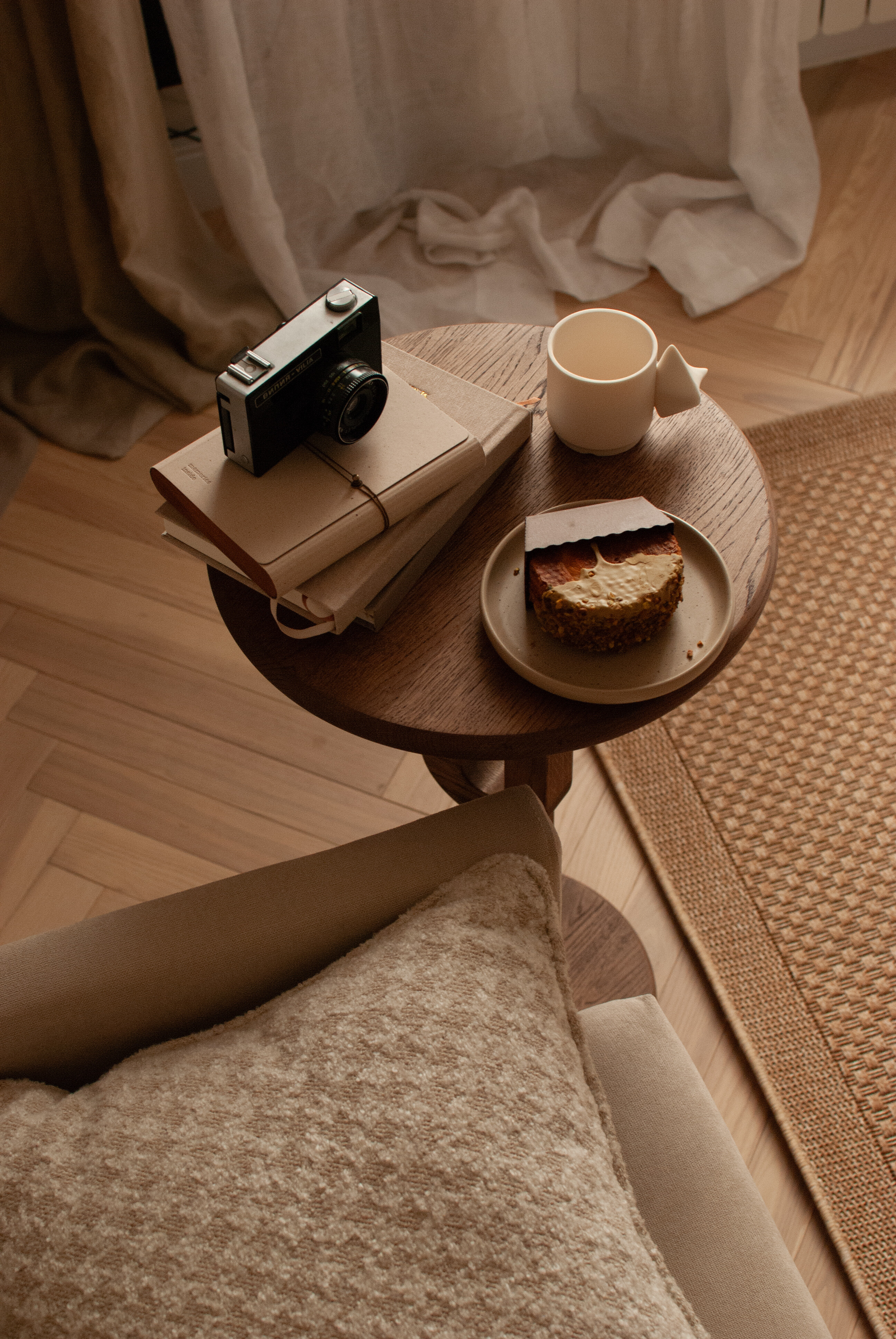 Nie lubi pośpiechu. Najlepiej czuje się tam, gdzie światło tańczy na ścianach, a dzień zaczyna się od oddechu — cichego, spokojnego, pełnego intencji. To miejsce na filiżankę kawy, notatkę zapisaną ołówkiem, myśl, która jeszcze się nie rozpędziła.