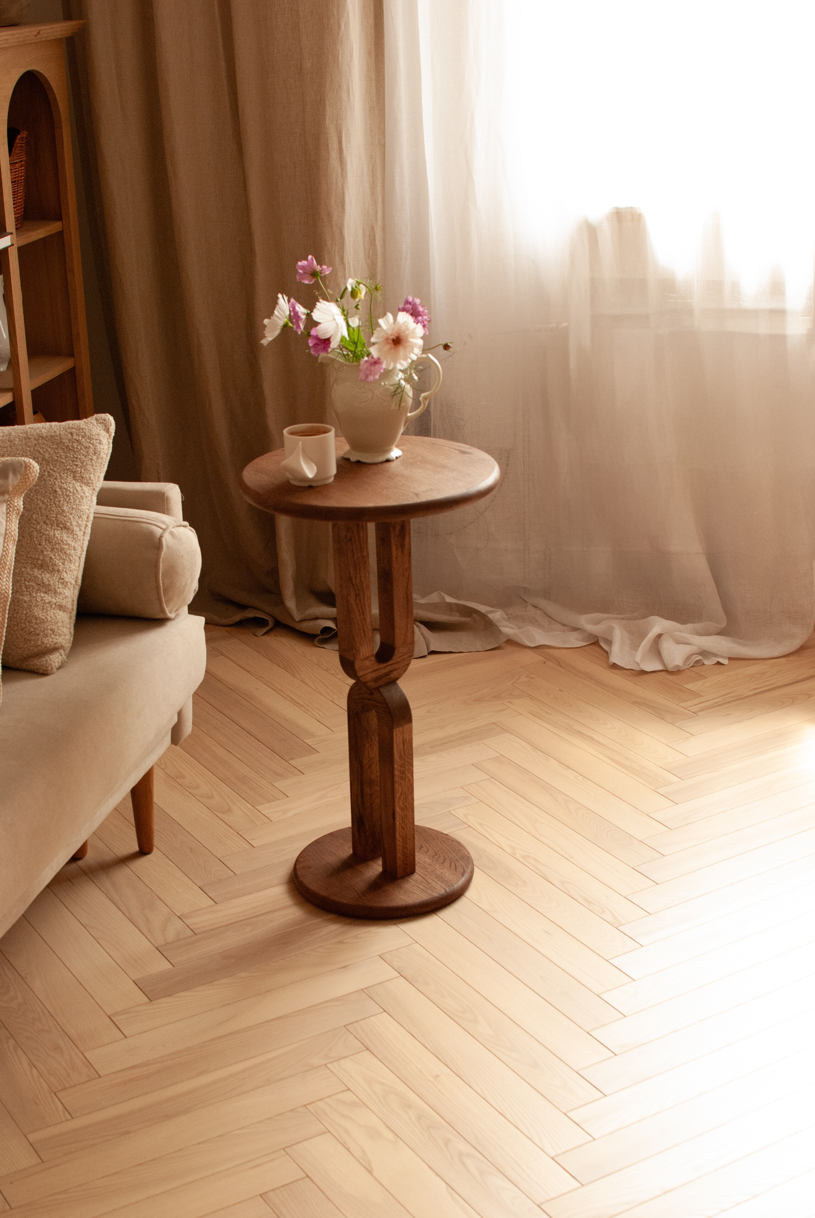 Z litego dębu, wykończony naturalnym olejem, który wydobywa z drewna wszystko to, co w nim najpiękniejsze — ciepło, fakturę, niepowtarzalność.