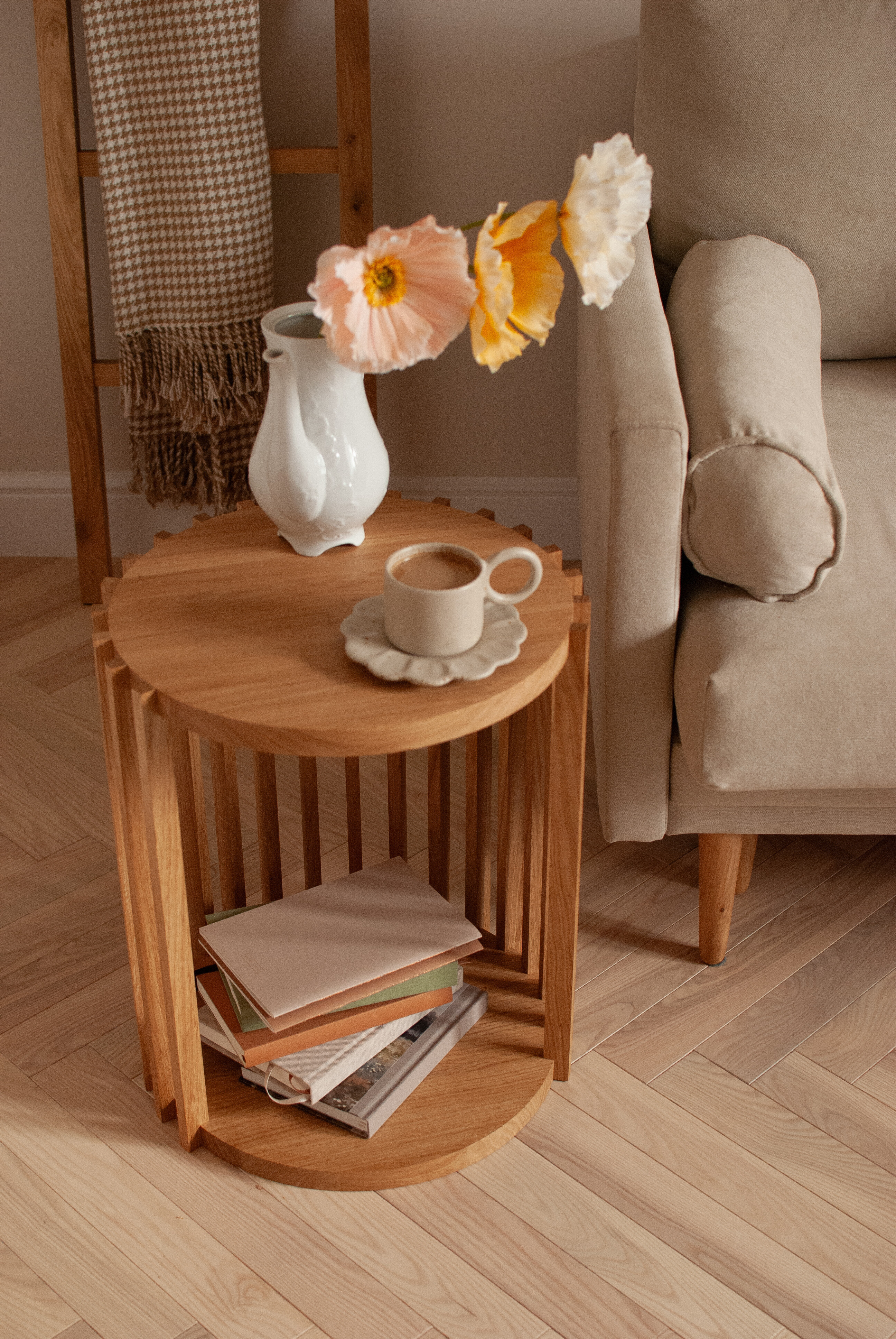Materiał: dąb, wykończony olejem do mebli Osmo
