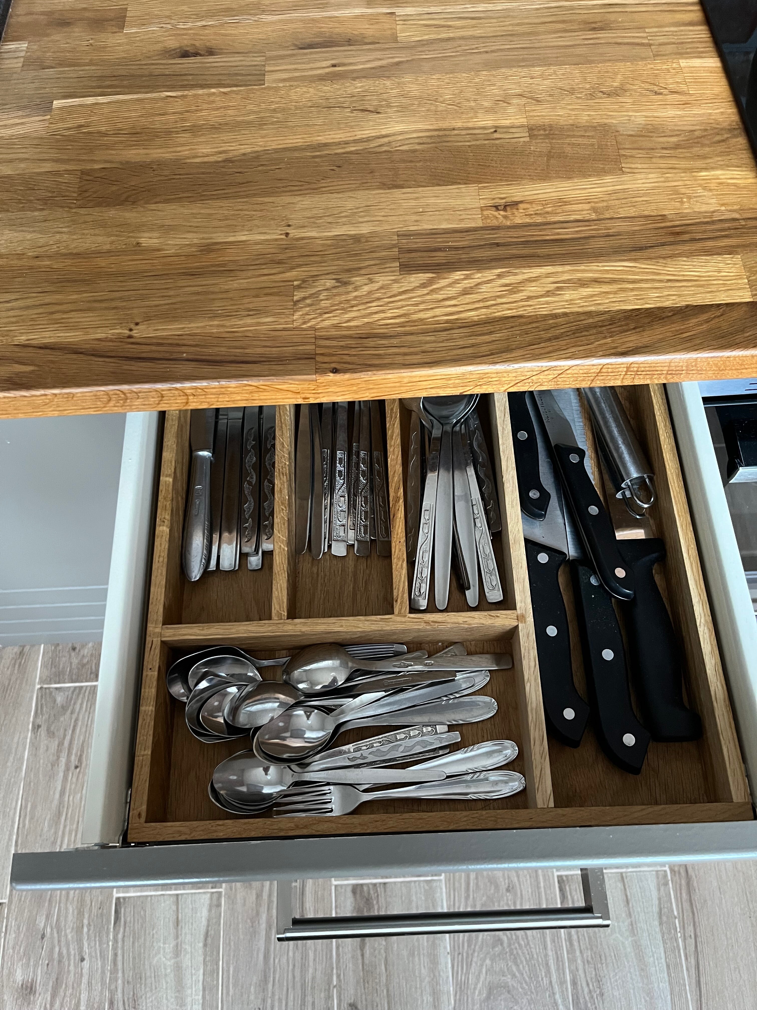 Od teraz wszystkie sztućce będą perfekcyjnie ułożone, a dokładne dopasowanie do szuflady zapobiegnie wpadaniu w szczelinę.